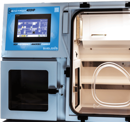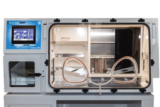 Our new redesigned Bactron400HP anaerobic chamber with a spacious new 19.8 cu. ft. workspace and new inner workstation incubator allow the new BACTRON400HP to deliver more capacity without compromising the compact design for any research lab space. Researchers will have total authority over their work area with plentiful bench space and a sizable 10.1’’ color capacitive touchscreen controller. The instrument results are displayed on the large, easy-to-read LCD screen that can function with or without gloves.  Onscreen symbols inform the user of real-time functions of working modes, alarms, and anaerobic status. Also, our engineers have upgraded the unit's inner chamber with a sizable HEPA filtration ecosystem that effectively ensures micro-particle arrest in most applications. Our BACTRON Anaerobic Chambers have an airtight construction of stainless steel and rigid acrylic glass for unobstructed vision and integrity. The chamber cuffs form a comfortable seal around the operator’s arms that enables complete manipulation of plates and specimens inside the working chamber forming a work user-friendly in most applications. When sitting undisturbed and unopened at a steady state, the BACTRON Anaerobic Chamber typically rests oxygen-free and anaerobic. Our Anaerobic Chambers meet EN61010, UL61010, and Can/CSA61010 standards.