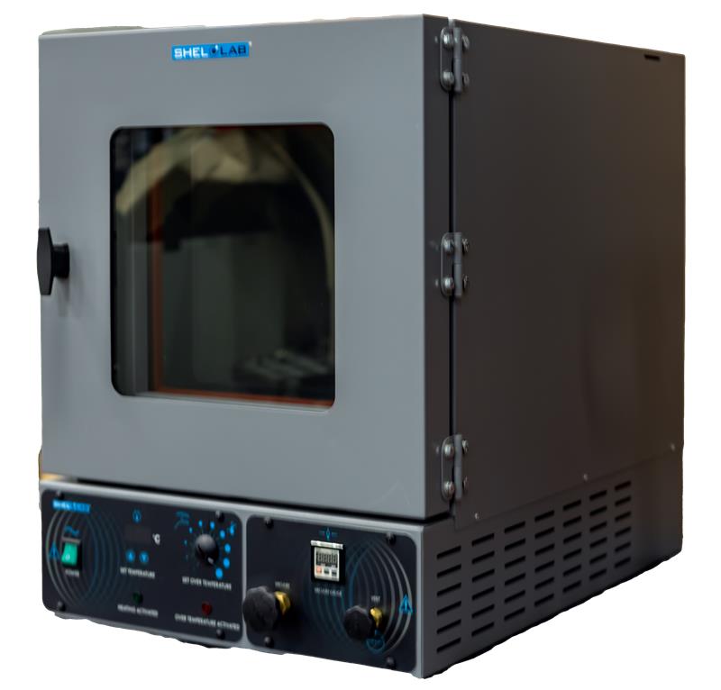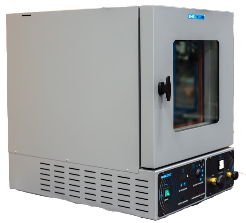 Our revamped SHEL LAB SVAC vacuum ovens provide exceptional capabilities for fast and gentle drying of heat-sensitive materials. Vacuum ovens prevent residue accumulation on products and use lower temperatures than typical convection ovens. Your products are processed with minimal impact and maximum throughput. SHEL LAB vacuum ovens have stainless steel interiors and provide exceptional durability and stability. SVAC Vacuum Ovens support a diverse array of applications.To achieve required vacuum levels, users can choose from a 3/8-inch orifice or a KF-25 fitting to withstand heavy use and minimize draw-down time. The doors on these units have positive latch handles with spring-loaded glass to facilitate a good vacuum seal without hinge binds that shorten the gasket life. The tempered glass viewing window allows for safe, continuous monitoring of samples. SHEL LAB Vacuum Ovens are equipped with silicone gaskets.